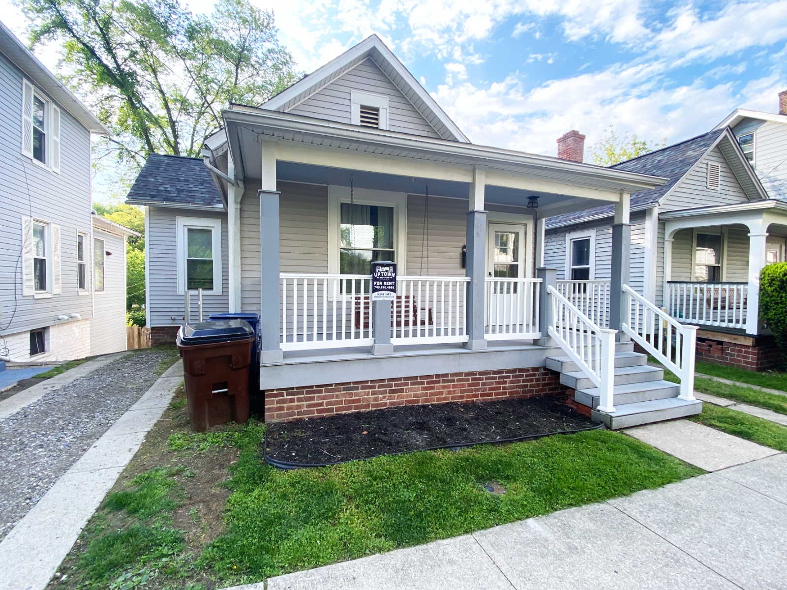 Only one block from Court Street in Uptown Athens, this 2 bedroom house has off-street parking and an excellent front porch for people watching! As you enter the living room there is abundant natural light illuminating the historic architectural details that have been so lovingly cared for. From the living room you enter the dining room and from that point you can either head straight-ahead to enter the kitchen or to the left to enter the hallway leading to the first front bedroom then the full bathroom and finally to the rear bedroom. Through the kitchen is yet another porch/balcony overlooking the private back yard and the Athens Central Hotel. All appliances are provided including a washer and dryer. Central air is also included.