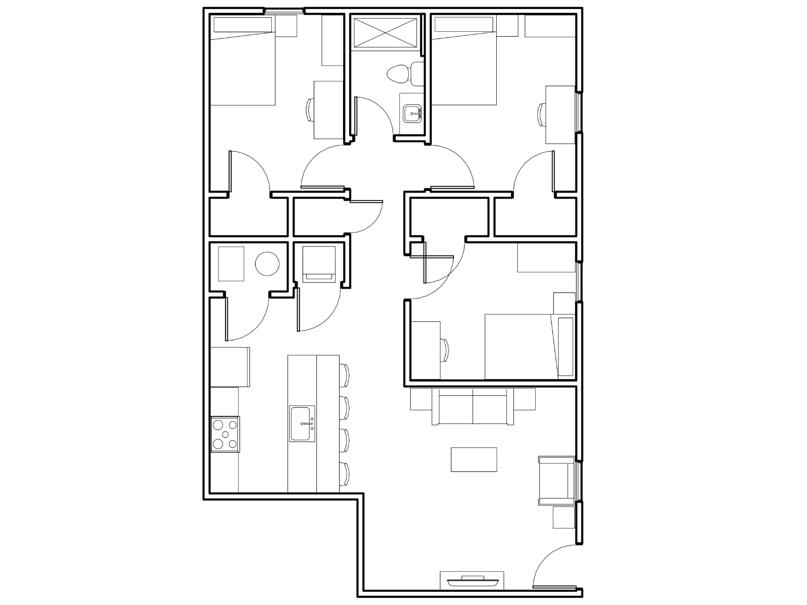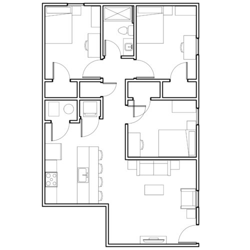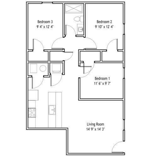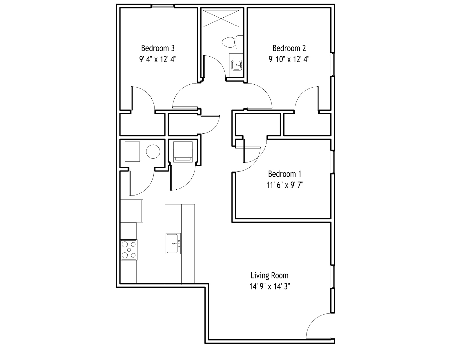 Large three bedroom, one bathroom single story floor plan apartment, located right off of Court Street!
