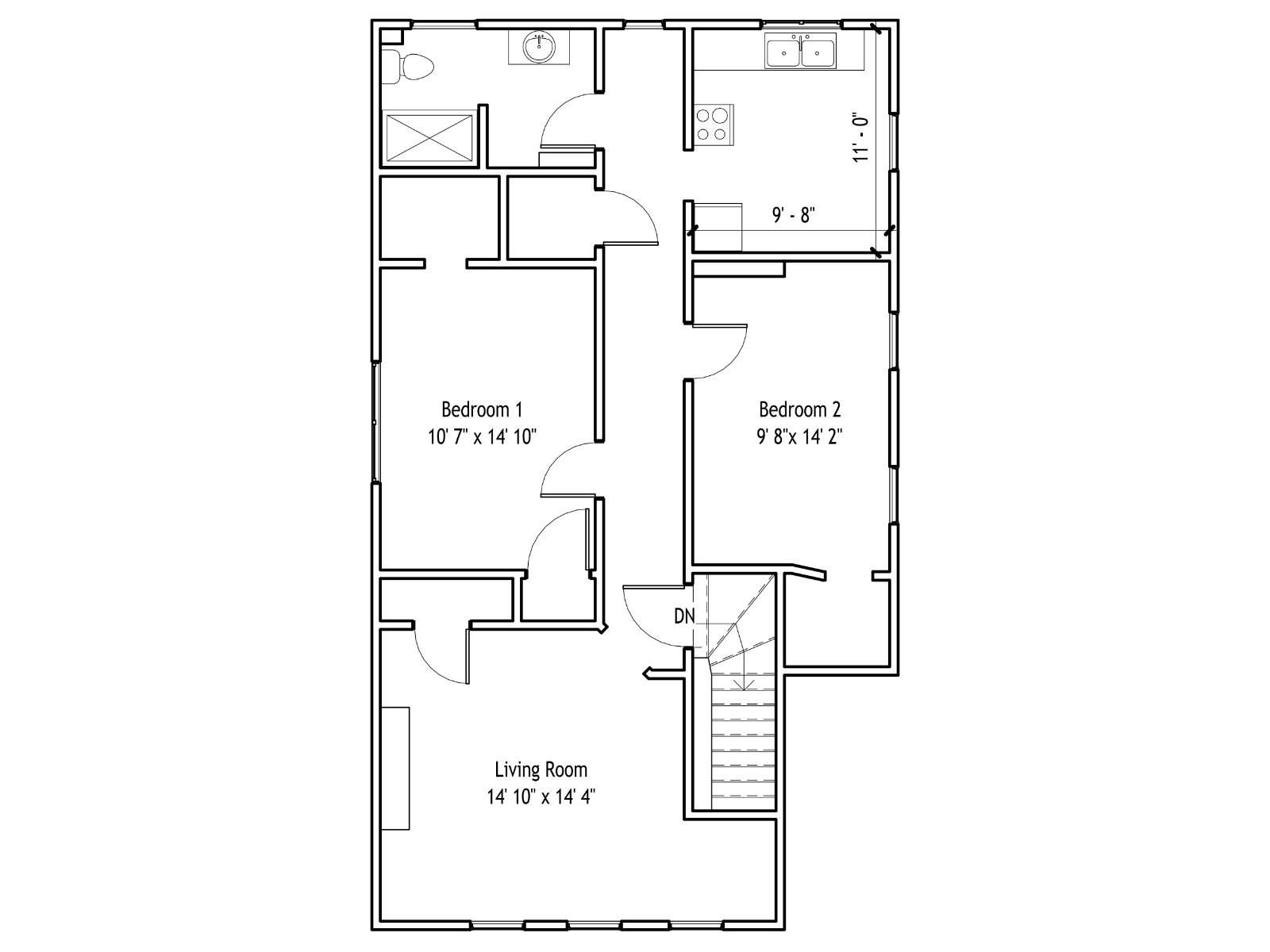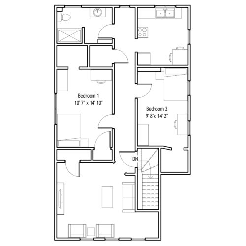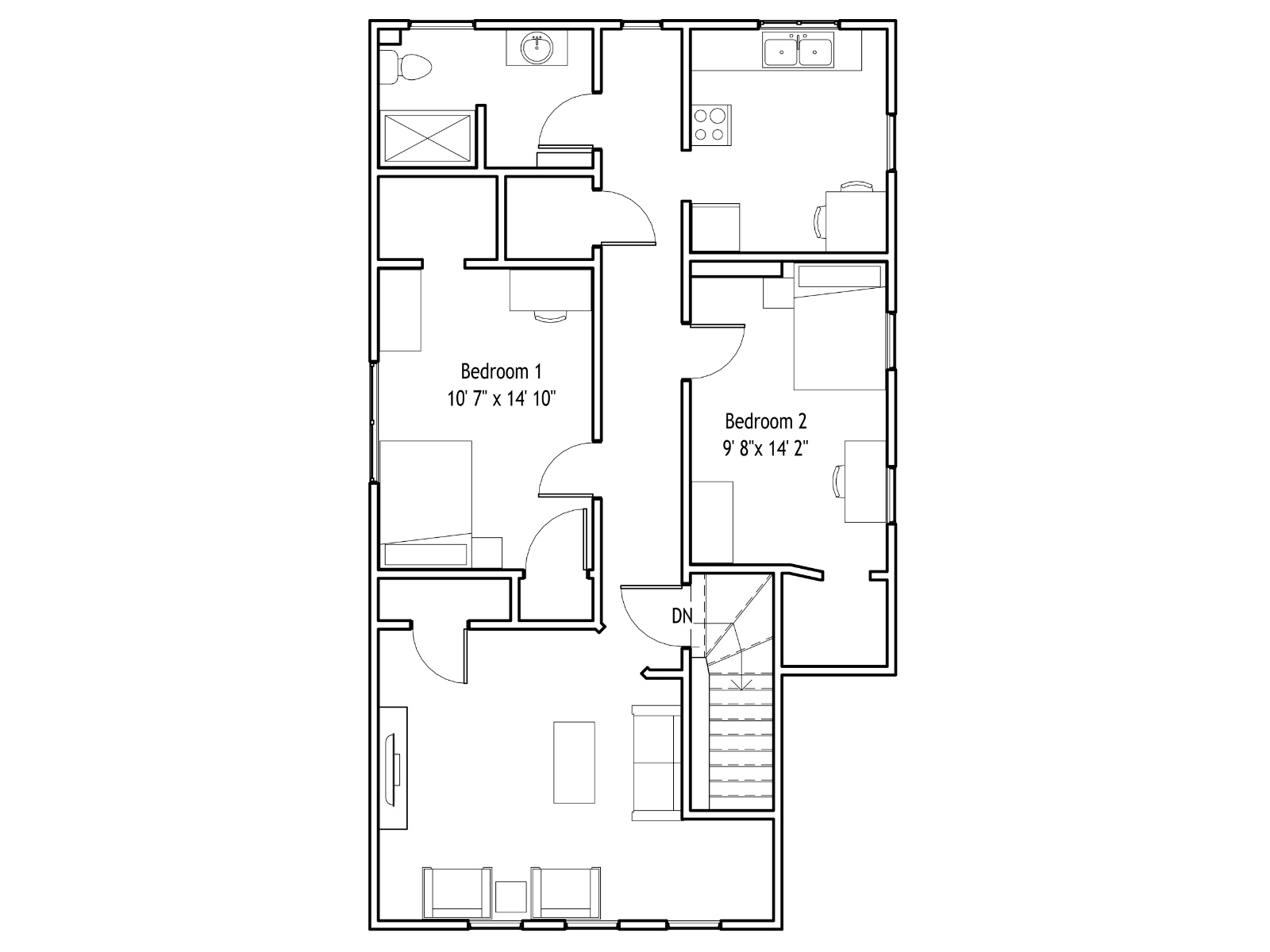 This apartment not only features two large bedrooms but also a spacious kitchen AND living room, with a shared laundry room located on the bottom level of the house.