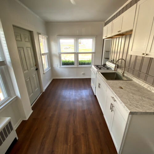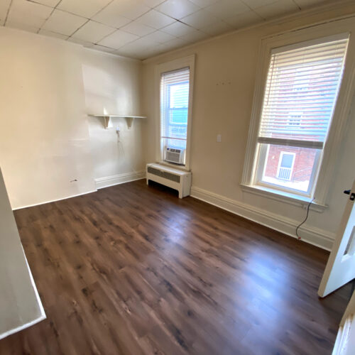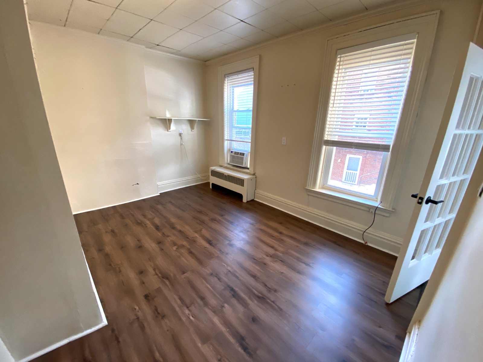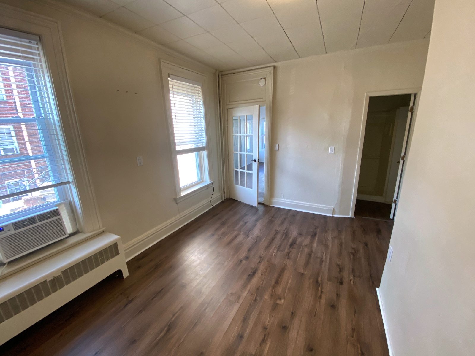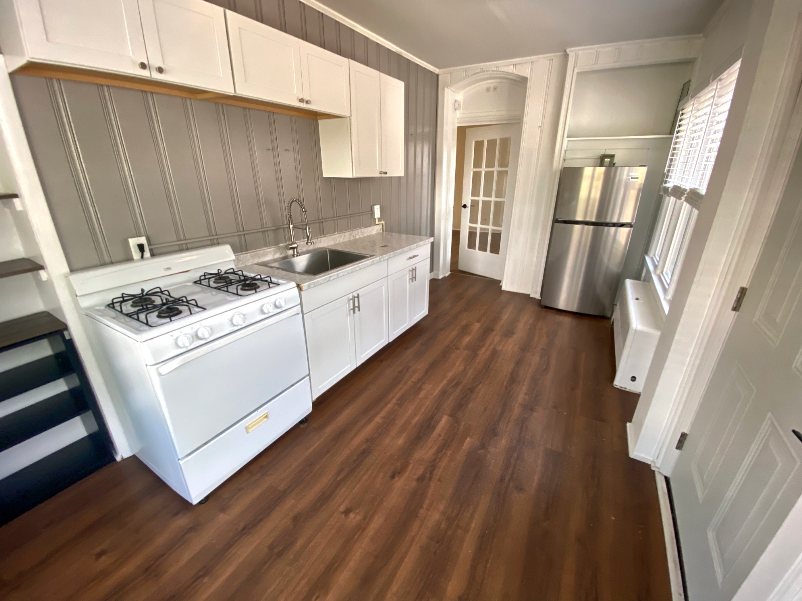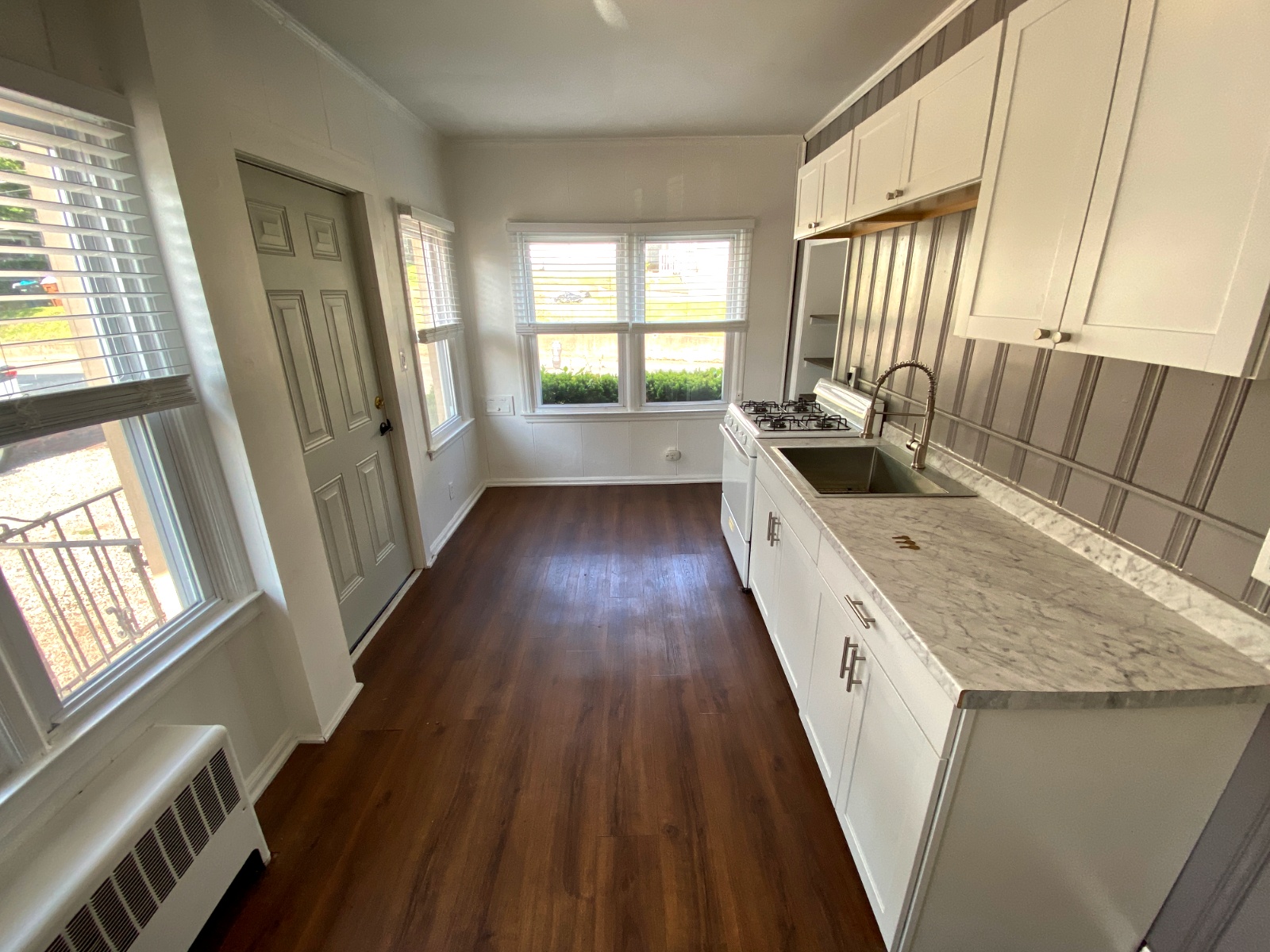 This apartment features hard surface floors (no carpet!). A shared laundry room is also located on the bottom level of the house and just steps away from this apartment.