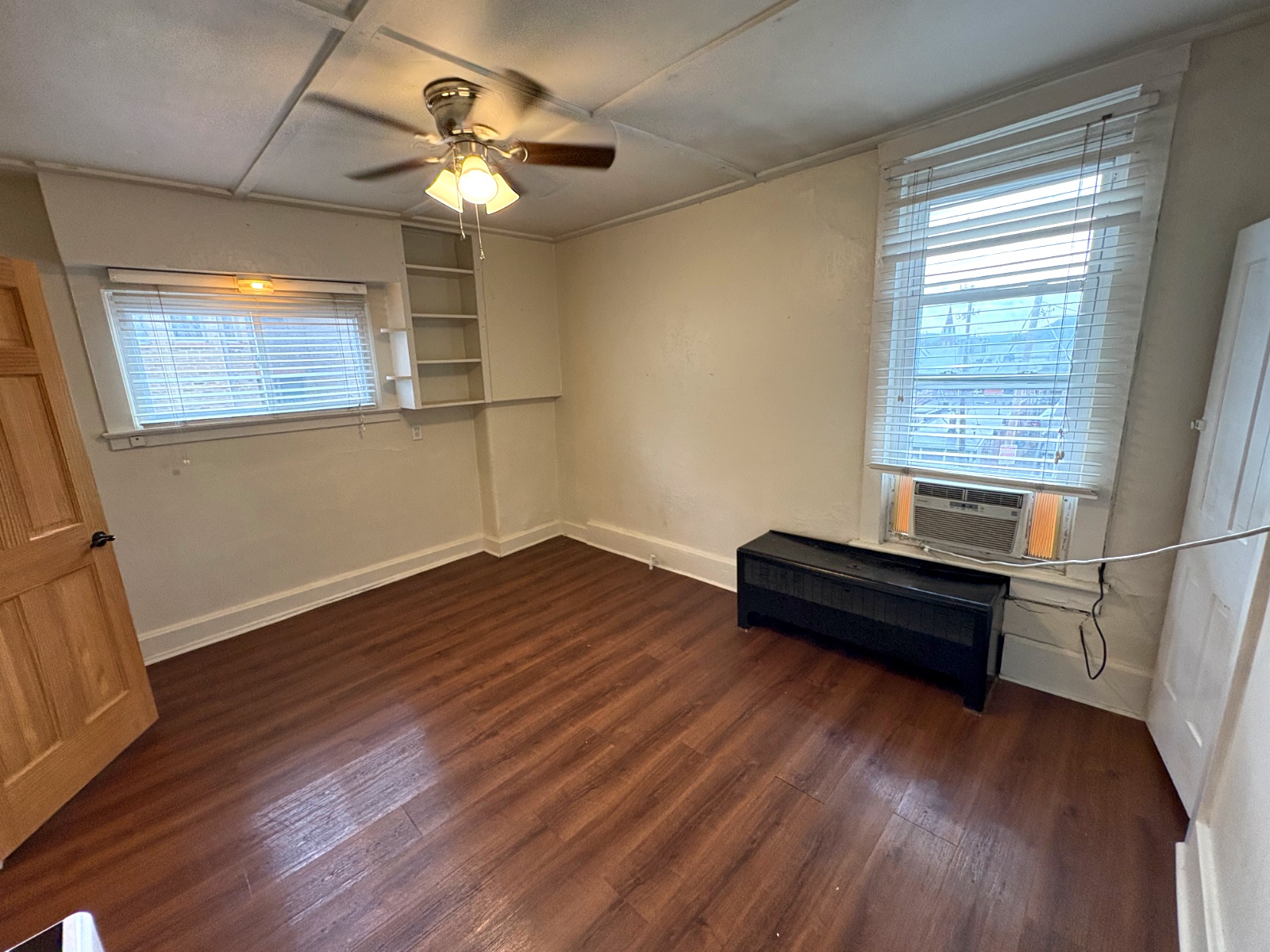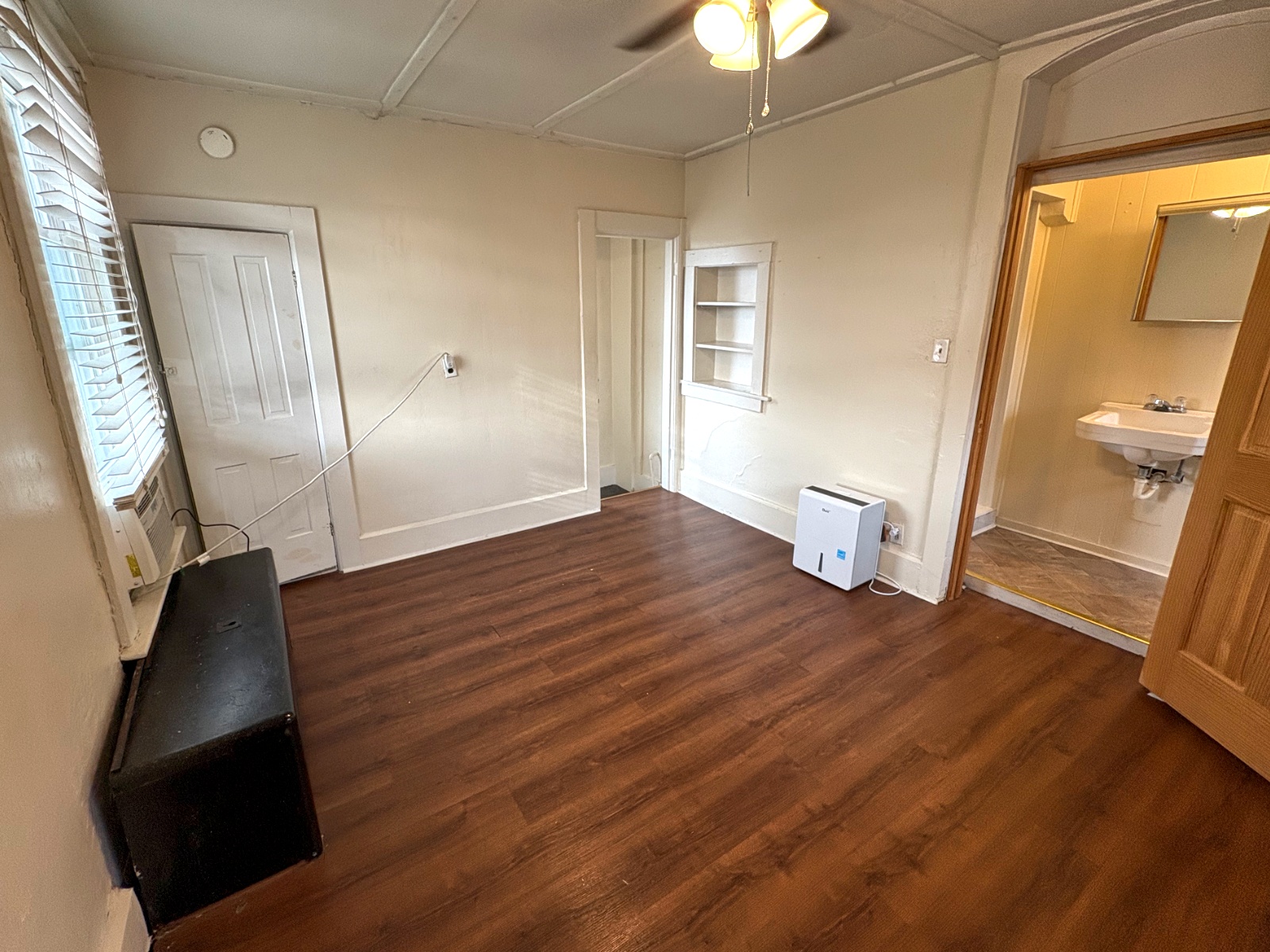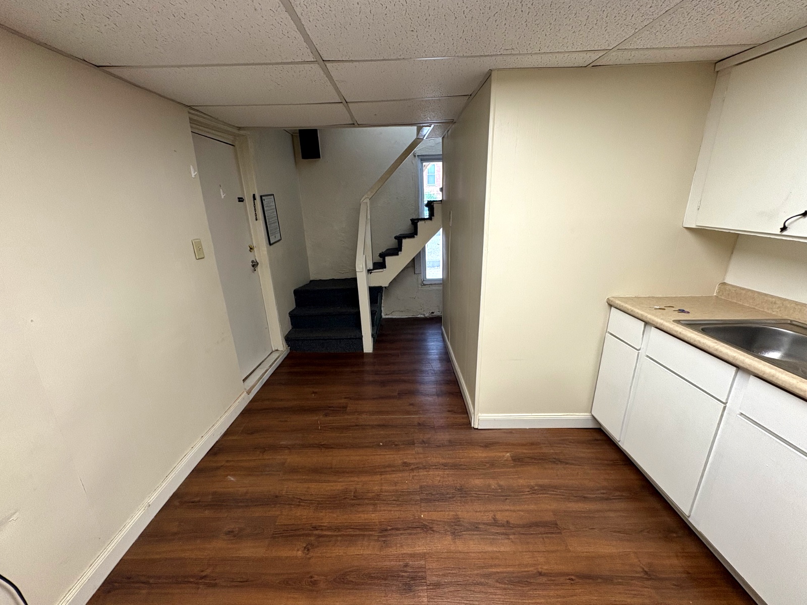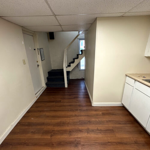 This apartment features hard surface floors (no carpet!). A shared laundry room is also located on the bottom level of the house and just steps away from this apartment.