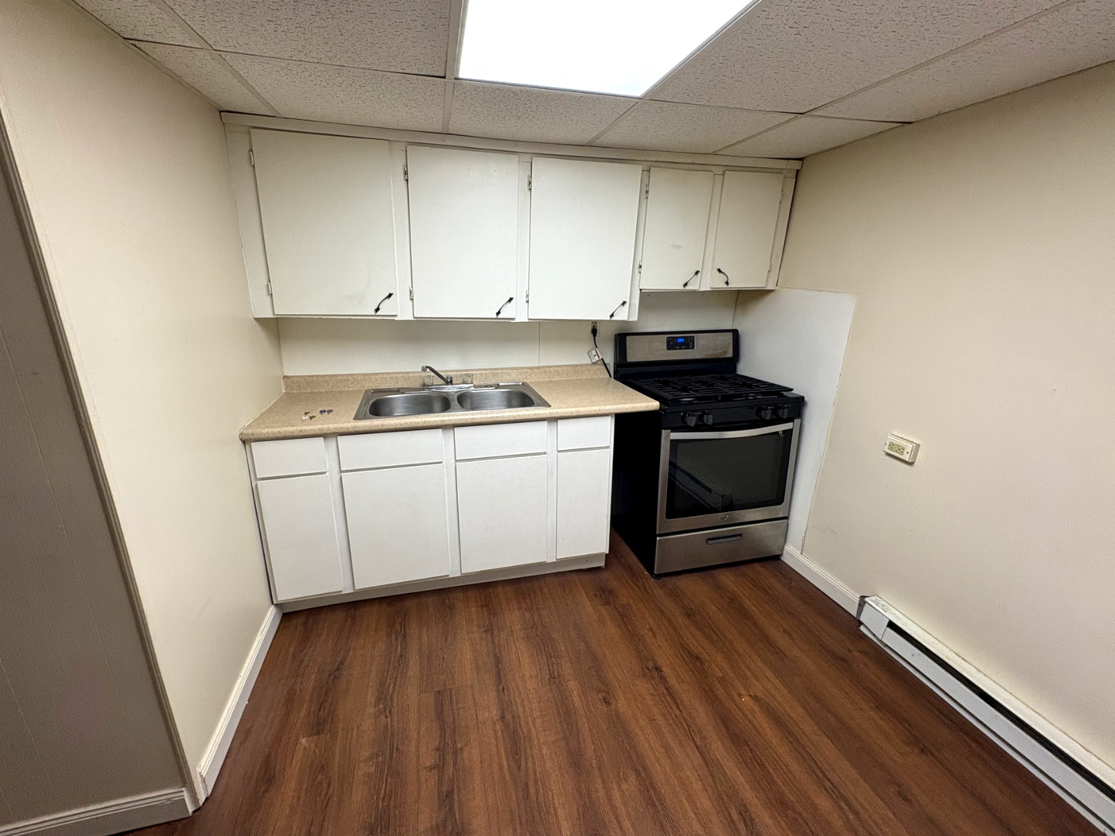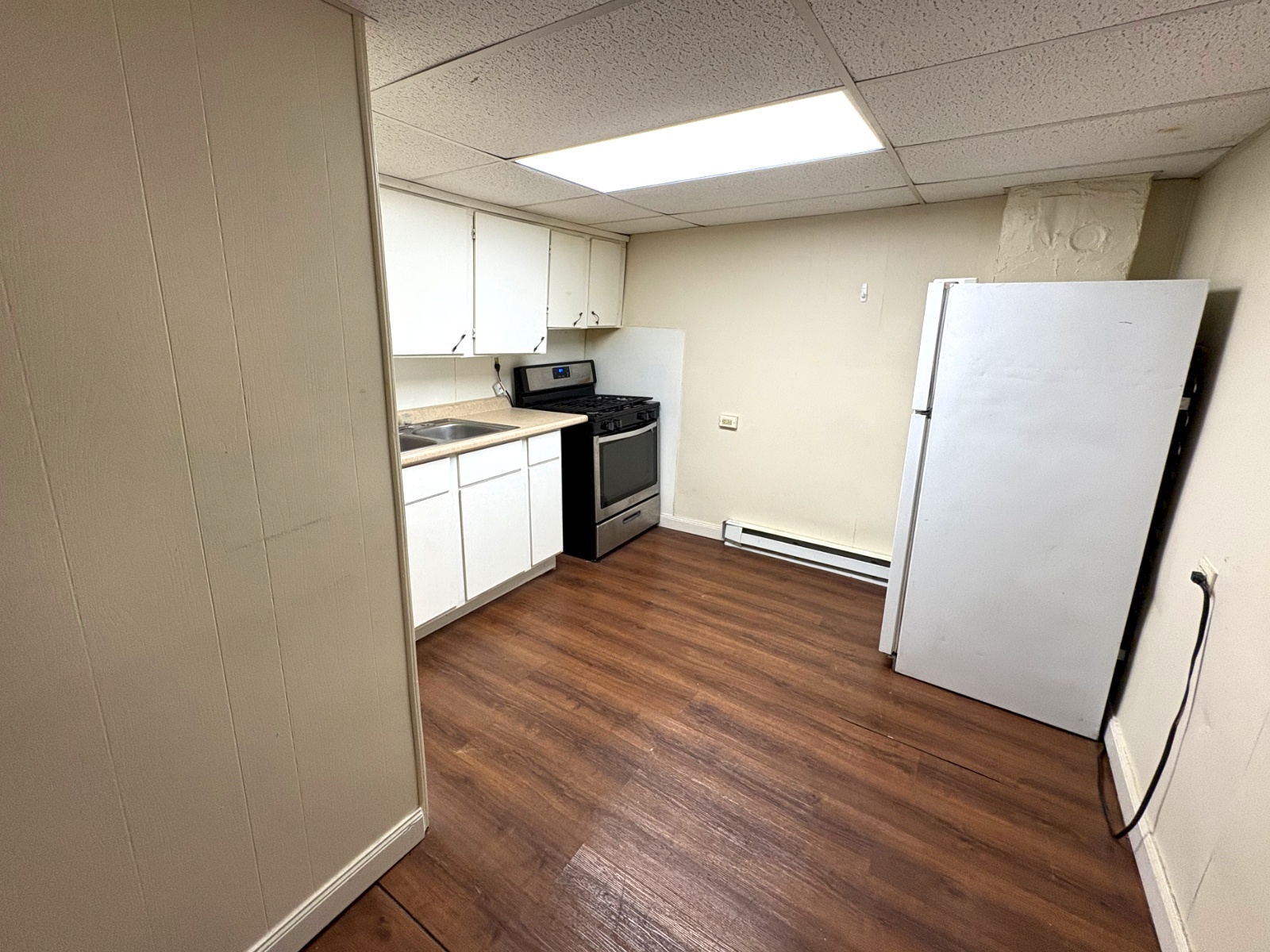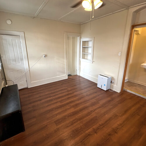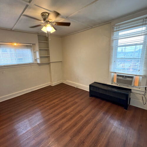 This apartment features hard surface floors (no carpet!). A shared laundry room is also located on the bottom level of the house and just steps away from this apartment.