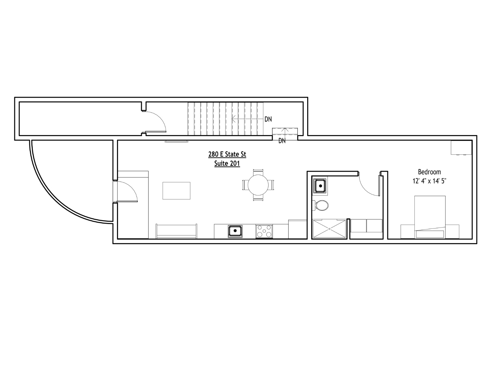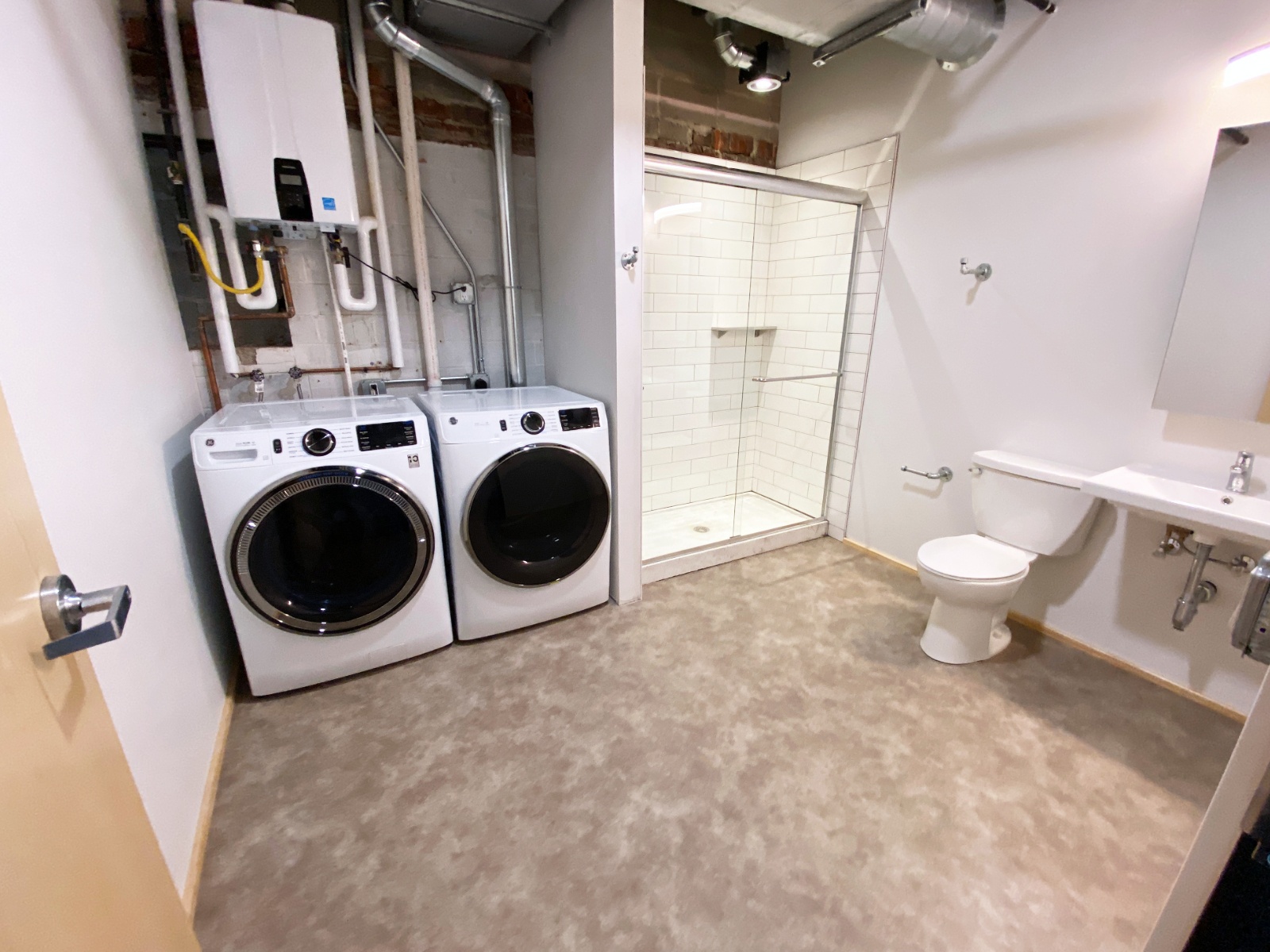 Loft with industrial design aesthetic. Unique brick interior with metal accents+ butcher block countertops w/ open shelving and stainless steel appliances. Newly constructed property with open concept and high ceilings with exposed duct work and plumbing lines. This 1 bedroom flat has one bathroom with large shower and in-unit washer-dryer and is very livable with a character that is unique and not something that you’d characteristically find in the City of Athens. Right off the living space, there is a private balcony overlooking E State St.