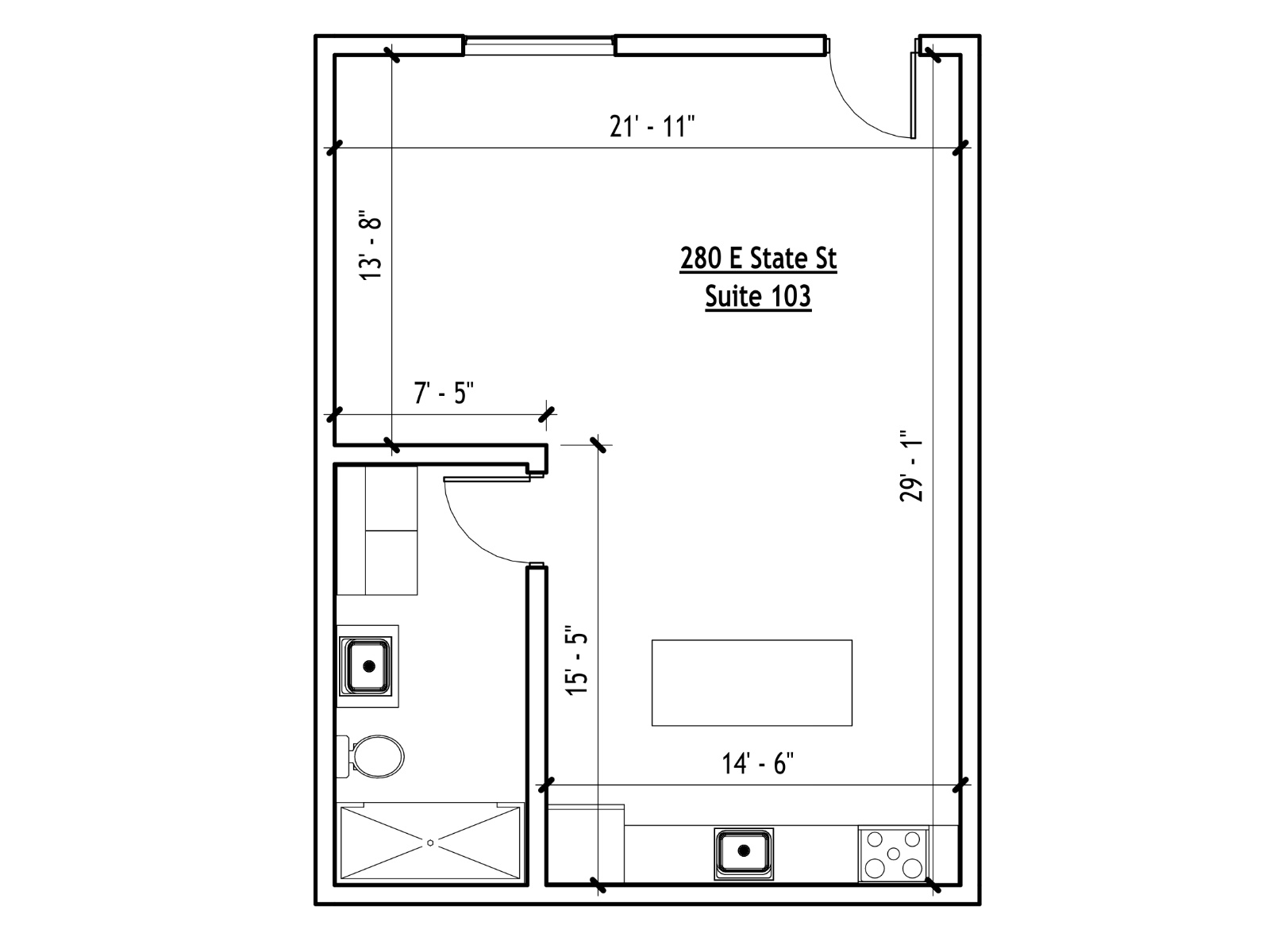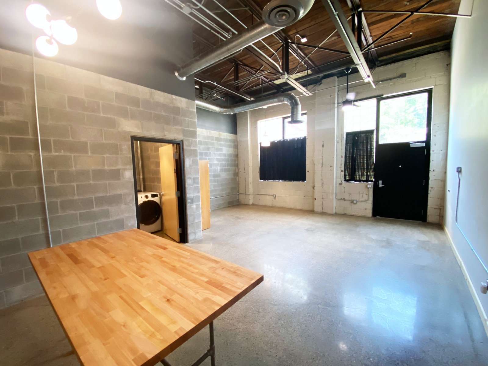 Universally designed floor plan new construction with industrial design aesthetic. Polished concrete floors, butcher block countertops w/ open shelving and stainless steel appliances. Newly constructed property with open concept and seriously high ceilings with exposed duct work and plumbing lines. This studio flat has one bathroom with in-unit washer-dryer and is very livable and different than any other properties in the City of Athens.