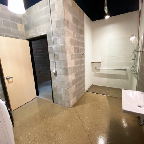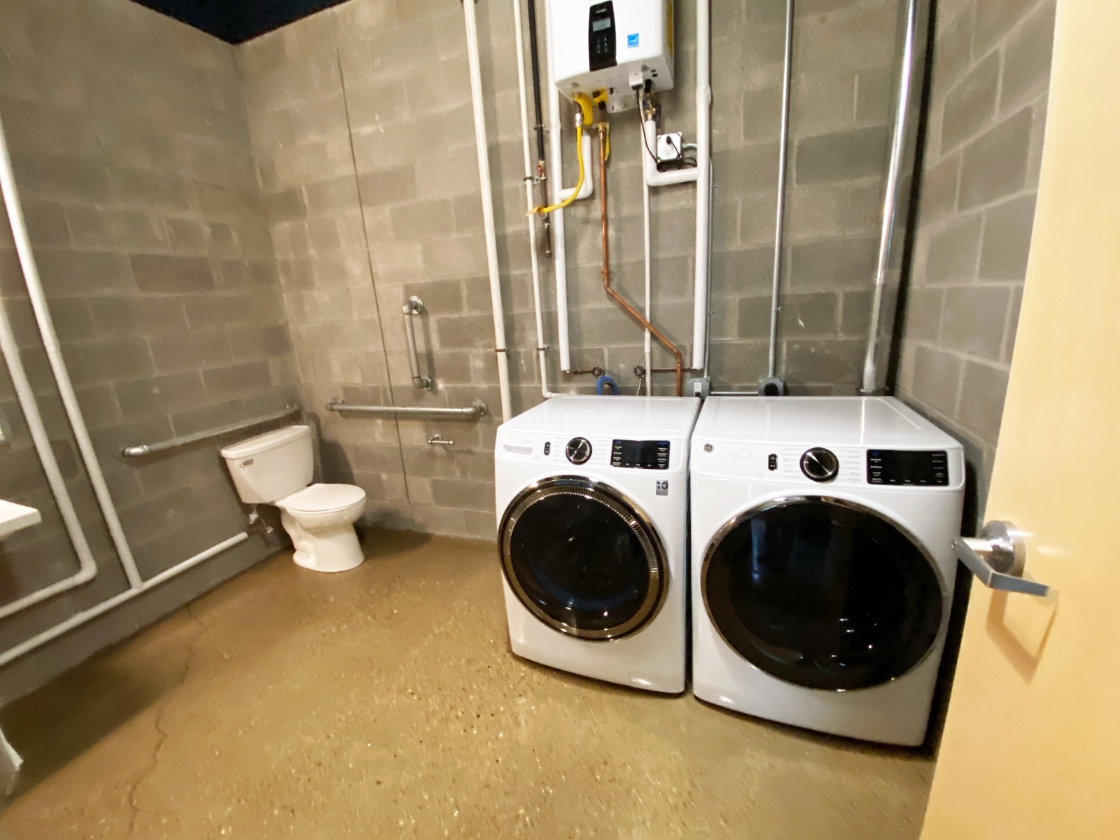 Universally designed floor plan new construction with industrial design aesthetic. Polished concrete floors, butcher block countertops w/ open shelving and stainless steel appliances. Newly constructed property with open concept and seriously high ceilings with exposed duct work and plumbing lines. This two bedroom and one bathroom unit is very livable for residents of all abilities.