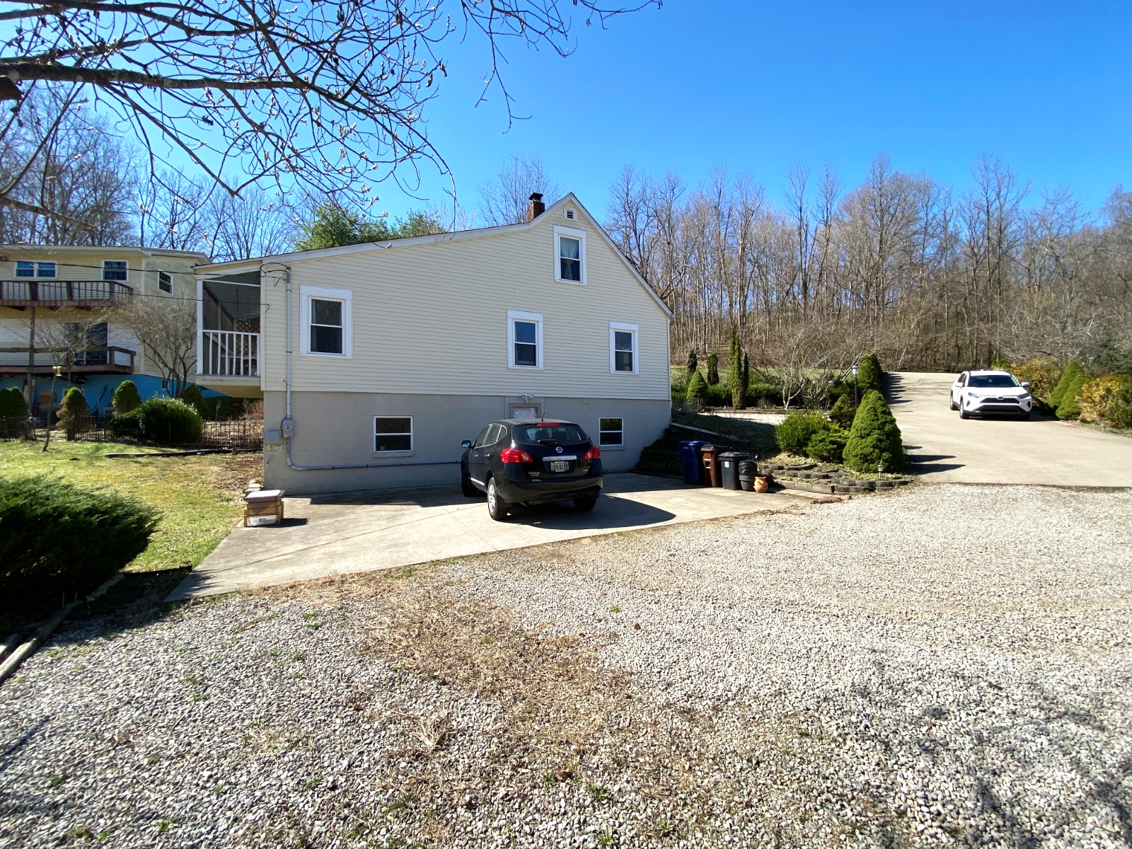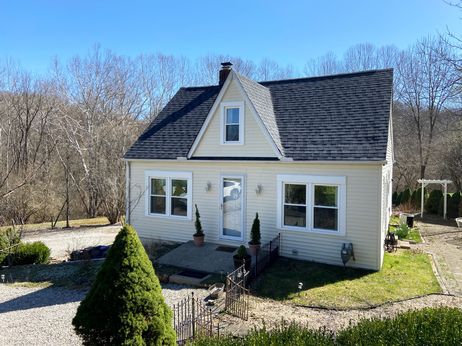 This lovingly cared for immaculate 3 bed/2 bath home is located on a peaceful drive with scenic views. Updates include: New roof in 2022, Refinished hardwood floors, all new double-pane windows and a professionally painted interior. First floor primary bedroom with en suite bathroom includes a screened-in deck. Second bedroom is also on the first floor with full bathroom located in the hall. Upstairs you’ll find a large bedroom with storage. Other uses could be a home office, playroom or craft/hobby area. Full unfinished basement. Ample parking. Outdoor patio, fenced garden area and fruit trees!